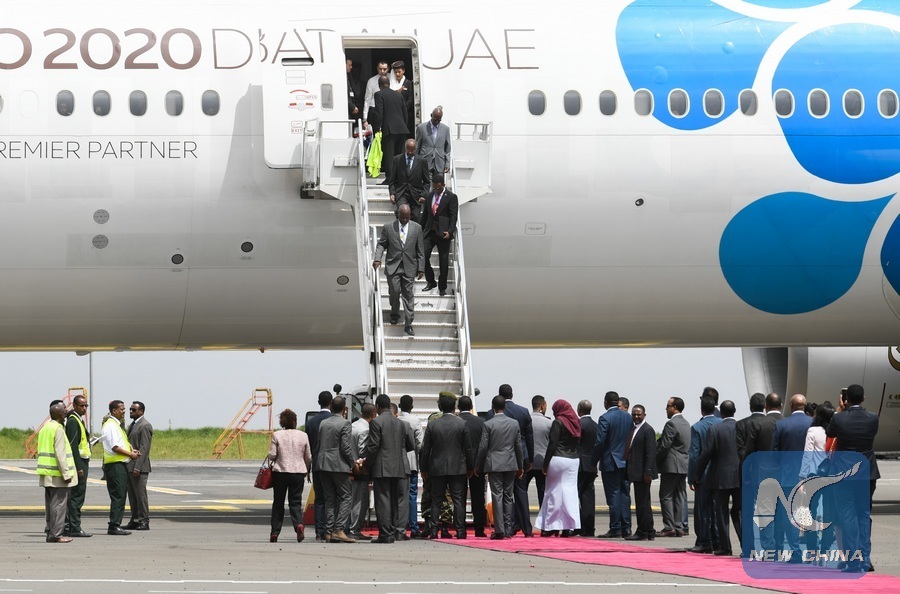 File photo shows a high-level Eritrean delegation arrive at Bole International Airport in Addis Ababa, capital of Ethiopia, June 26, 2018. Ethiopia on Tuesday received a high-level Eritrean delegation for the first time since the two countries fought a bloody two-year border war from 1998-2000. (Xinhua/Michael Tewelde)