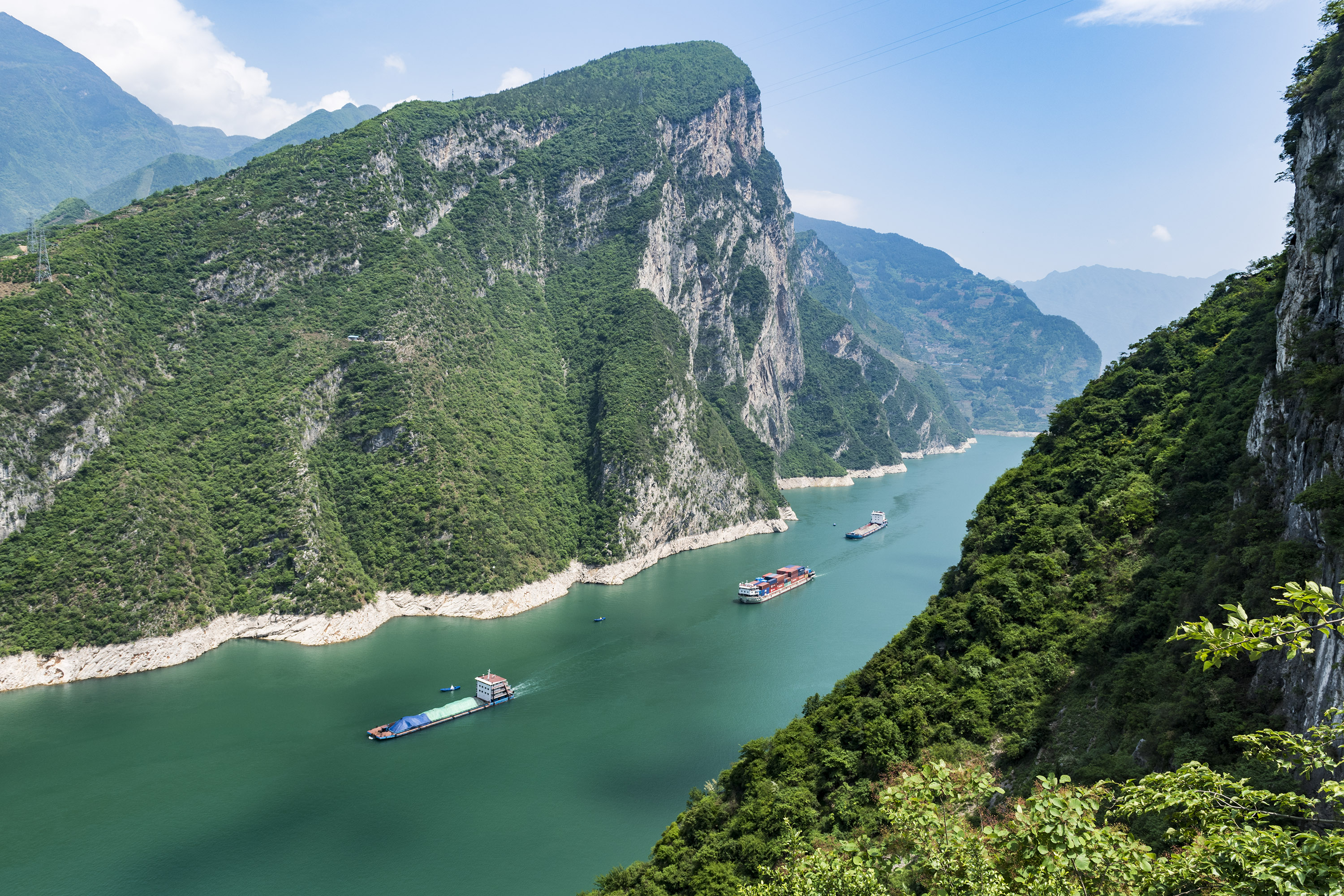 Vessels sail in Bingshubaojian gorge in Zigui County in the Three Gorges Reservoir Region in central China's Hubei Province, April 21, 2018. (Xinhua/Zheng Jiayu)