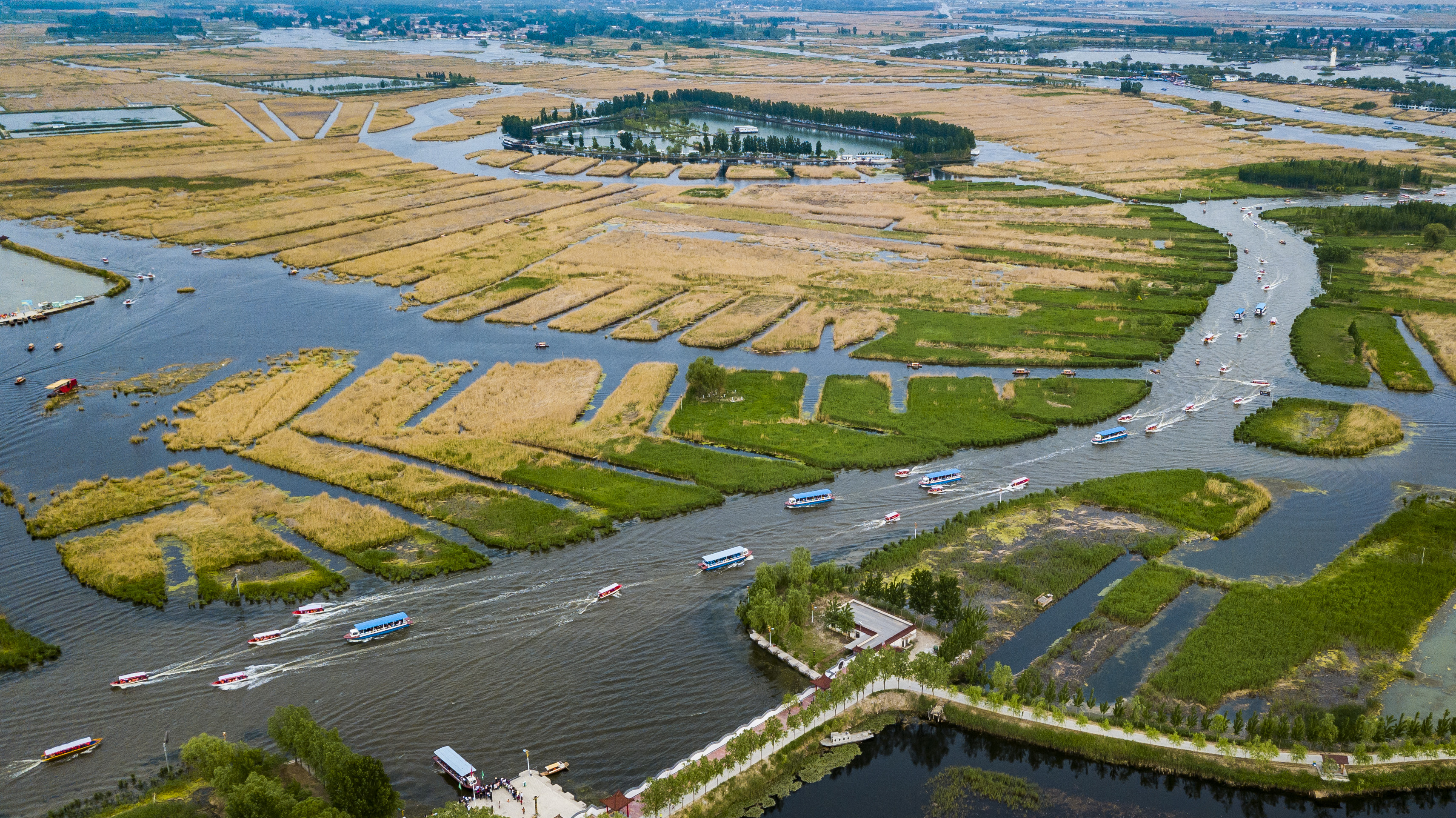 Aerial photo taken on April 30, 2018 shows the Baiyangdian scenic area in Xiongan New Area, north China's Hebei Province. (Xinhua/Shen Bohan)