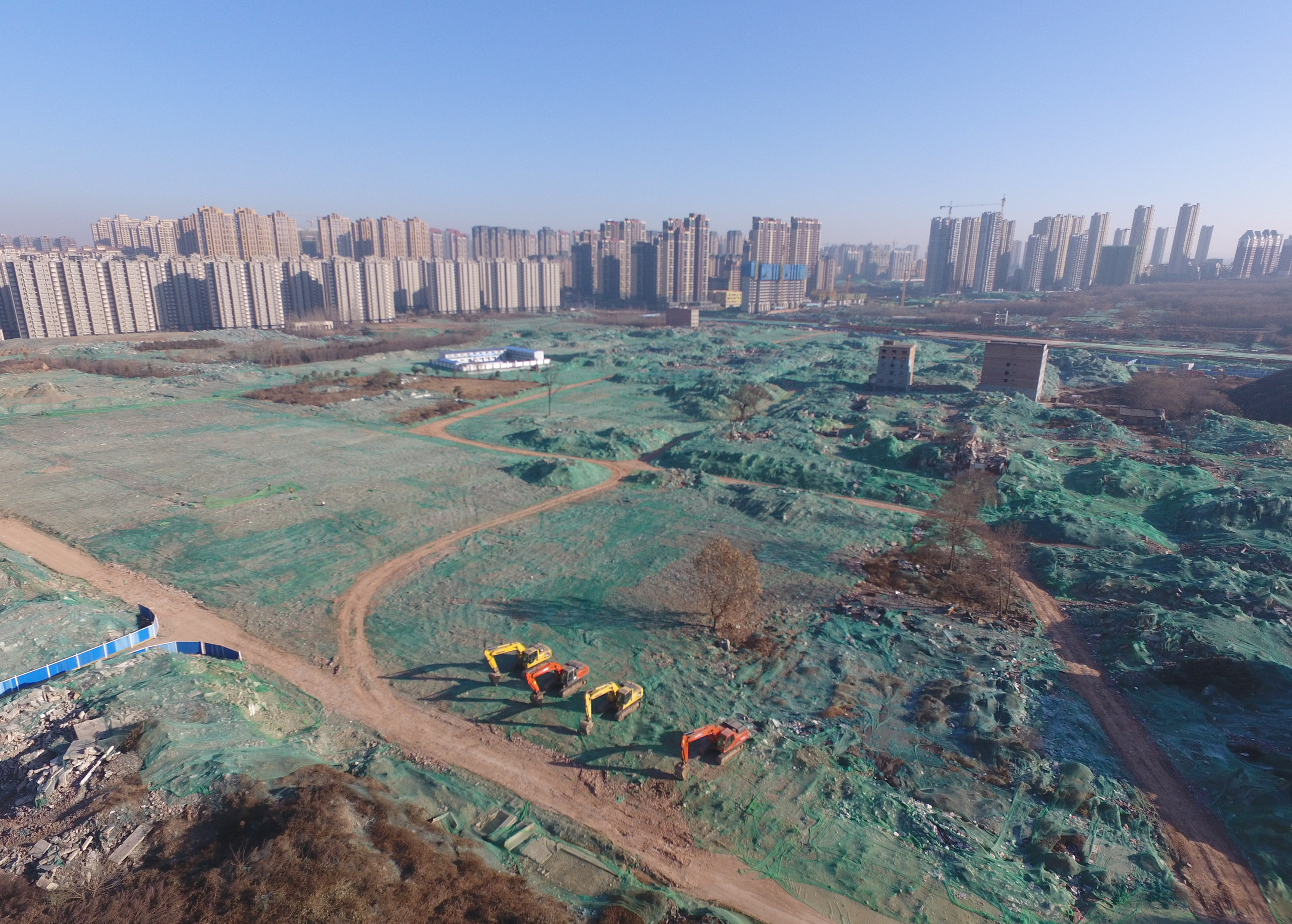 A demolition site is covered by nets to minimize spread of dust in Chang'an District of Xi'an, capital of northwest China's Shaanxi Province, Dec. 20, 2017. (Xinhua/Shao Rui)