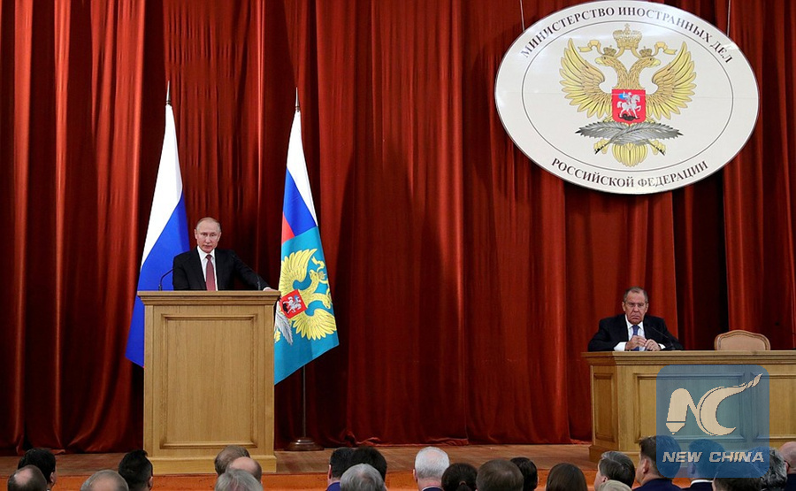 MOSCOW, July 19 (Xinhua) -- Russian President Vladimir Putin said Thursday that Russia will respond proportionally to moves by the North Atlantic Treaty Organization (NATO) that pose a direct threat to it.