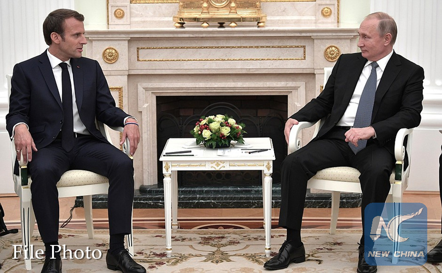 MOSCOW, July 21 (Xinhua) -- Russian President Vladimir Putin and his French counterpart Emmanuel Macron discussed the implementation of a joint initiative on delivering relief to Syria over the phone Saturday, the Kremlin said.