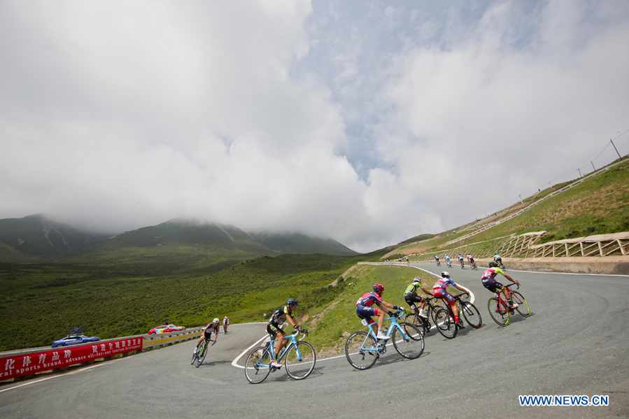 Cyclists compete in the sixth stage of the Tour of Qinghai Lake in northwest China's Qinghai Province, on July 27, 2018. (Xinhuanet Photo by Jia Haiyuan)