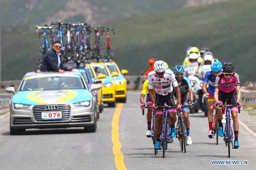 Cyclists compete in the sixth stage of the Tour of Qinghai Lake in northwest China's Qinghai Province, on July 27, 2018. (Xinhuanet Photo by Jia Haiyuan)