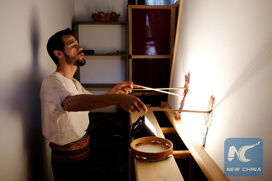 A man conducts the shadow play of Karagoz and Hacivat, the main art form of the traditional Ottoman theater. (Xinhua photo)