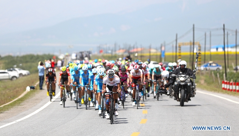 Cyclists compete in the seventh stage of the Tour of Qinghai Lake in northwest China's Qinghai Province, on July 28, 2018. (Xinhuanet Photo by Jia Haiyuan)