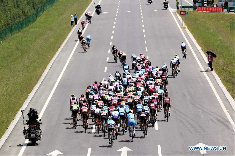 Cyclists compete in the seventh stage of the Tour of Qinghai Lake in northwest China's Qinghai Province, on July 28, 2018. (Xinhuanet Photo by Song Zhongyong)