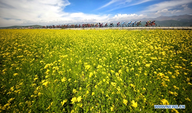 Cyclists compete in the seventh stage of the Tour of Qinghai Lake in northwest China's Qinghai Province, on July 28, 2018. (Xinhuanet Photo by Jia Haiyuan)