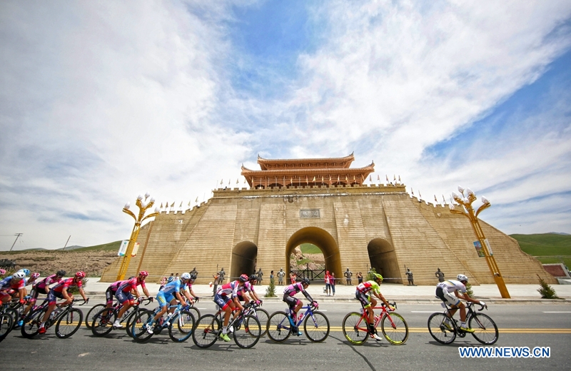 Cyclists compete in the seventh stage of the Tour of Qinghai Lake in northwest China's Qinghai Province, on July 28, 2018. (Xinhuanet Photo by Jia Haiyuan)