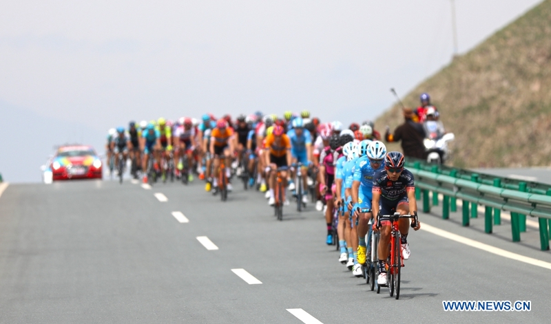 Cyclists compete in the seventh stage of the Tour of Qinghai Lake in northwest China's Qinghai Province, on July 28, 2018. (Xinhuanet Photo by Jia Haiyuan)