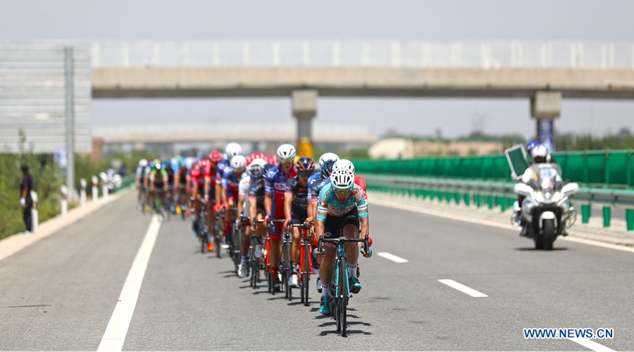 Cyclists compete in the ninth stage of the Tour of Qinghai Lake in northwest China's Gansu Province, on July 30, 2018. (Xinhuanet Photo by Jia Haiyuan)