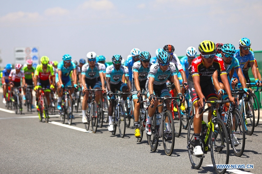 Cyclists compete in the ninth stage of the Tour of Qinghai Lake in northwest China's Gansu Province, on July 30, 2018. (Xinhuanet Photo by Jia Haiyuan)