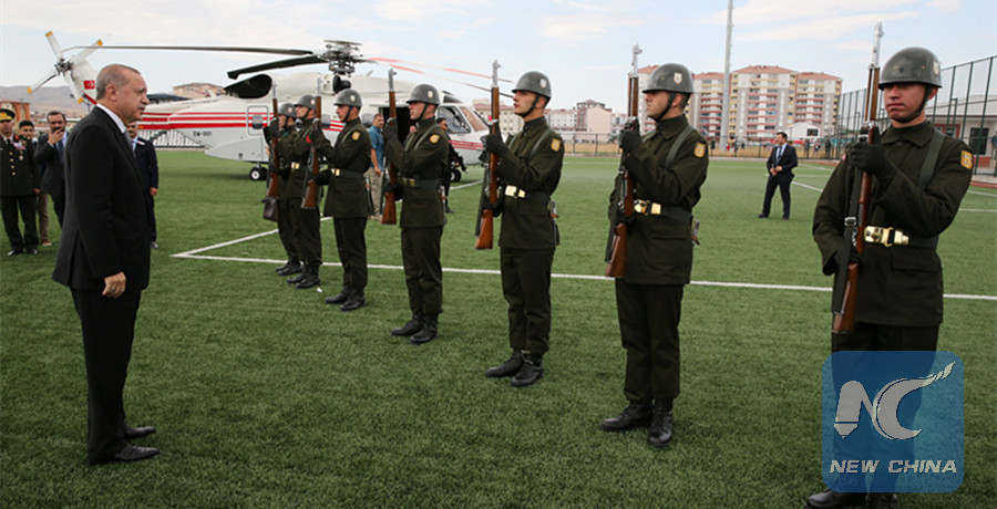 Turkish President Recep Tayyip Erdogan reviews a guard of honour upon his arrival in Sivas, Turkey, Aug. 1, 2018. (TurkishPresidential Palace)