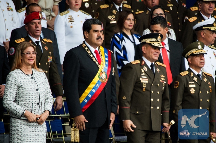 Venezuelan President Nicolas Maduro (2nd L) attends the commemoration of the 81st anniversary of the National Guard in Caracas Aug. 4, 2018. (Xinhua)