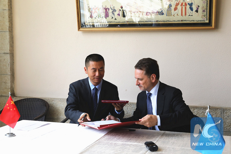 The agreement was signed by Guo Wei, director of the Office of the People's Republic of China to the State of Palestine, and Pierre Krahenbuhl, the UNRWA commissioner general.