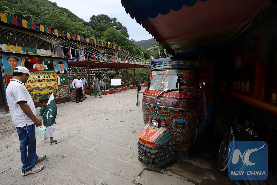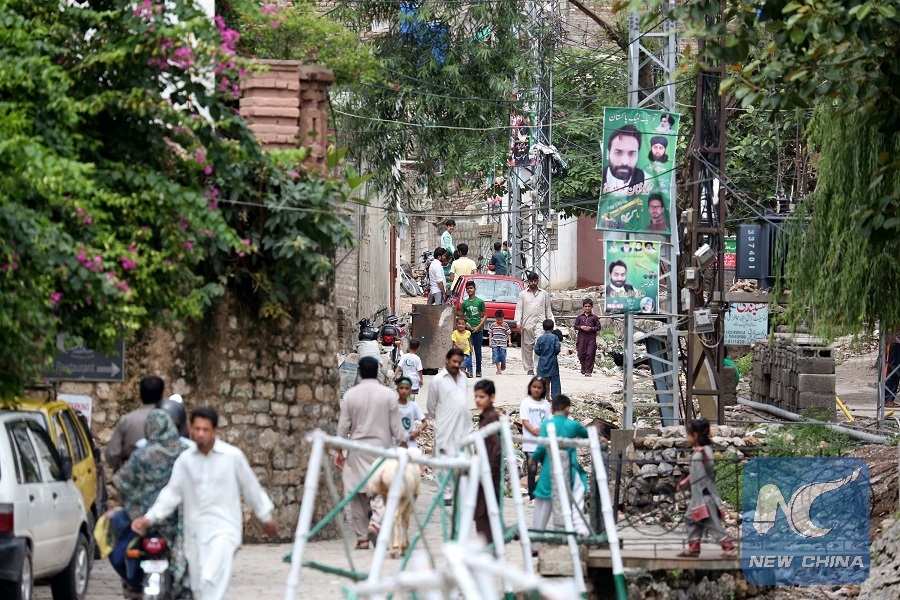 Photo taken on Aug. 14, 2018 shows people visit the Saidpur village in Islamabad, capital of Pakistan. (Xinhua/Ahmad Kamal)