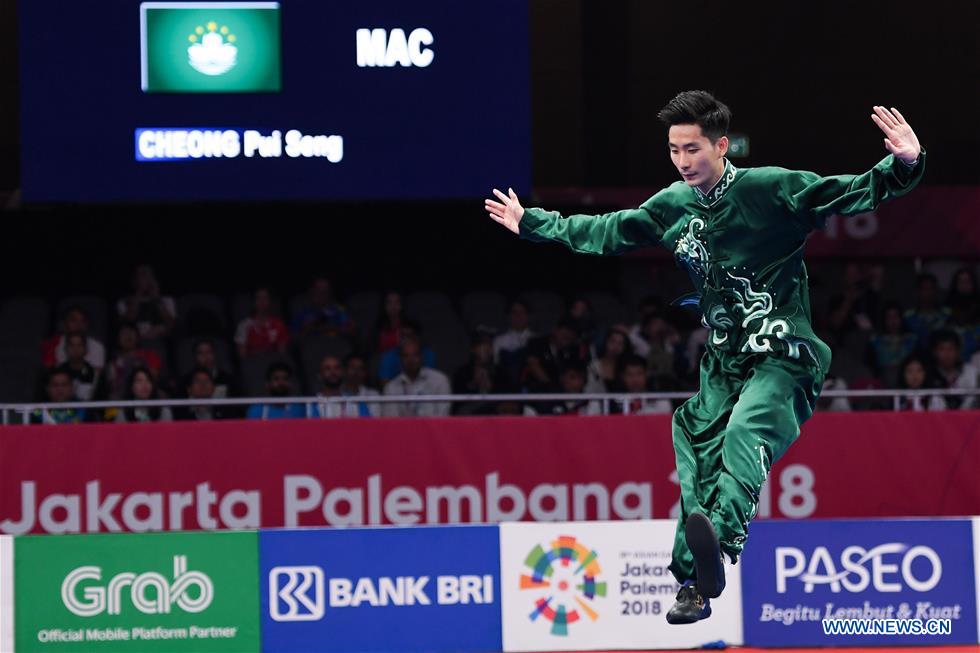 Cheong Pui Seng of China's Macao competes during the Taijiquan competition of Men's Taijiquan & Taijijian All-Round match at the 18th Asian Games in Jakarta, Indonesia, Aug. 21, 2018. (Xinhua/Cheong Kam Ka)
