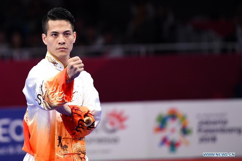 Chen Zhouli of China competes during the Taijiquan competition of Men's Taijiquan & Taijijian All-Round match at the 18th Asian Games in Jakarta, Indonesia, Aug. 21, 2018. (Xinhua/Cheong Kam Ka)