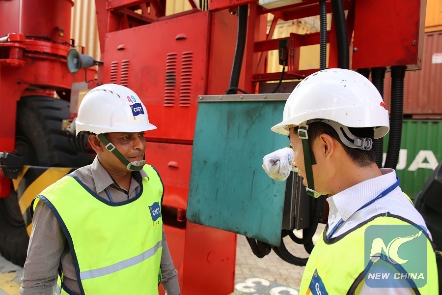 COLOMBO, Aug. 22 (Xinhua) -- In the container yard of the Colombo International Container Terminals (CICT), the joint venture between China Merchants Holding International and Sri Lanka Port Authority, there are 40 rubber-tired gantry cranes (RTG) which are loading and unloading containers everyday in a busy and orderly manner.