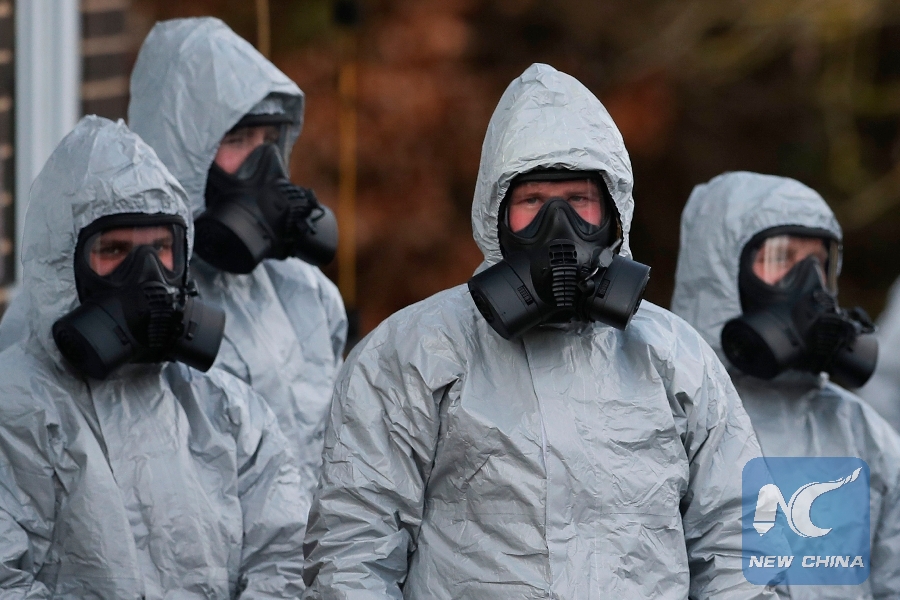 File Photo: Personnel in protective coveralls and breathing equiptment work at the Salisbury District Hospital in Salisbury, southern England, on March 10, 2018, in connection with the major incident sparked after a man and a woman were apparently poisoned in a nerve agent attack. (Xinhua/AFP)