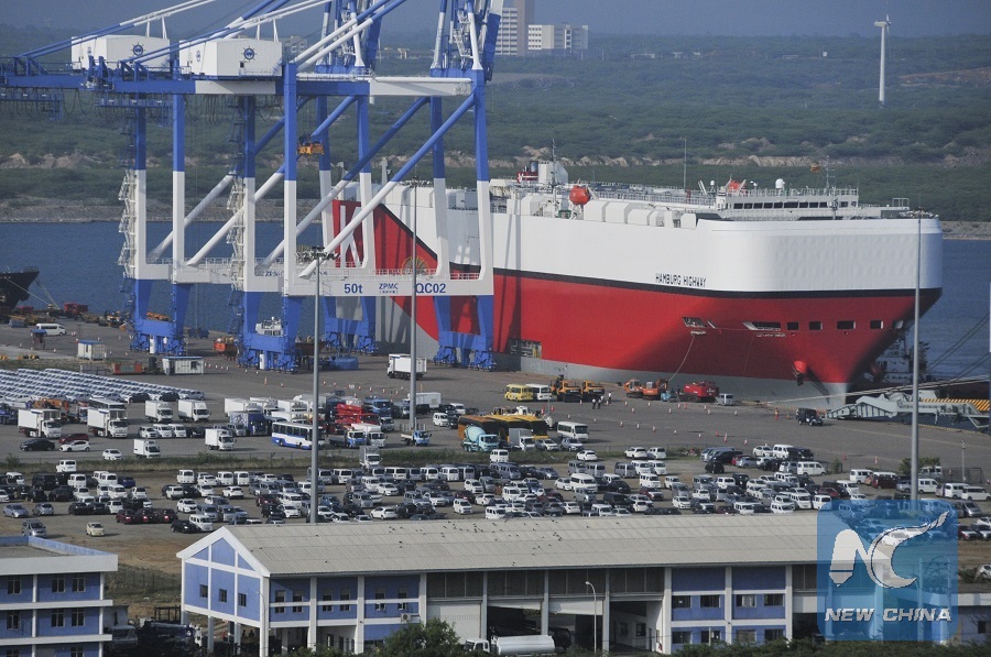 Photo taken on Feb. 8, 2017 shows the Hambantota Port in Sri Lanka. (Xinhua/Yang Meiju)