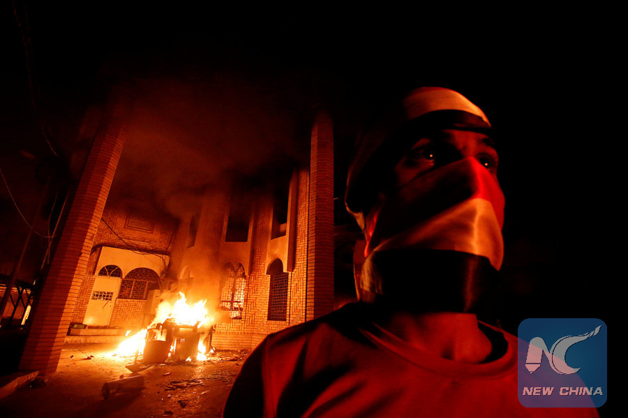 BAGHDAD, Sept. 7 (Xinhua) -- Dozens of demonstrators stormed the Iranian consulate in Iraq's southern city of Basra and set fire to the building after the security forces withdrew, a local security source said on Friday.