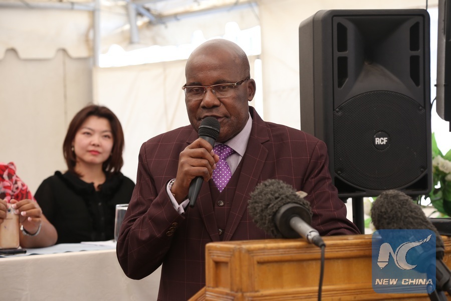 Minister for national and presidential scholarships Christopher Mushowe speaks on behalf of Zimbabwean President Emmerson Mnangagwa at the farewell ceremony organized for the scholarship winners before they embark on trips to China to pursue studies.(Xinhua/Zhang Yuliang)