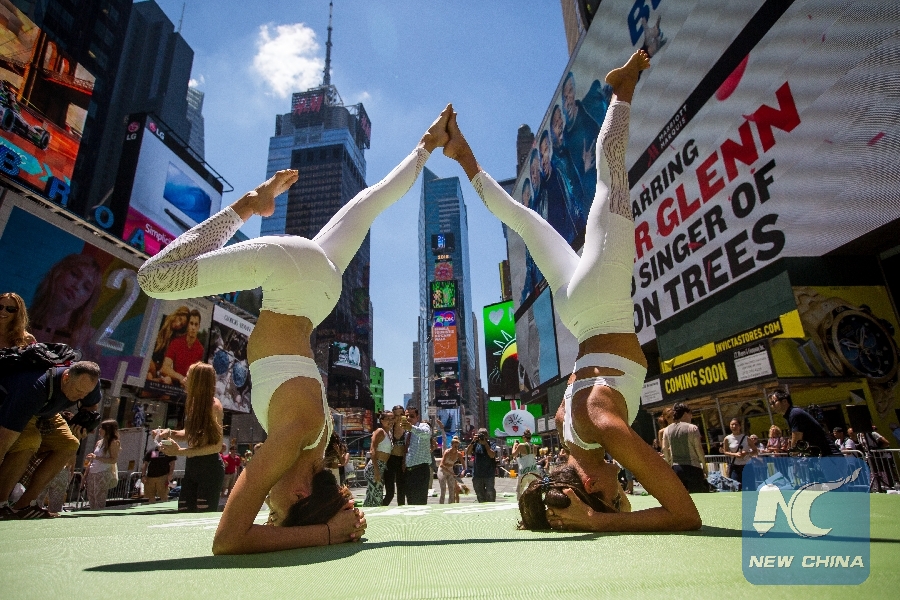 File Photo: People participate in a free yoga class for solstice at Times Square in New York, the United States, June 21, 2018. (Xinhua/Michael Nagle)