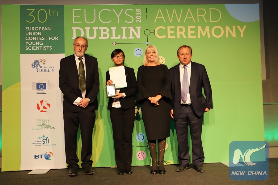 DUBLIN, Sept. 19 (Xinhua) -- A Chinese student was awarded here on Tuesday the third prize of the 30th European Union Contest for Young Scientists (EUCYS), the highest prize ever won by China since its participation in the contest in 2003.