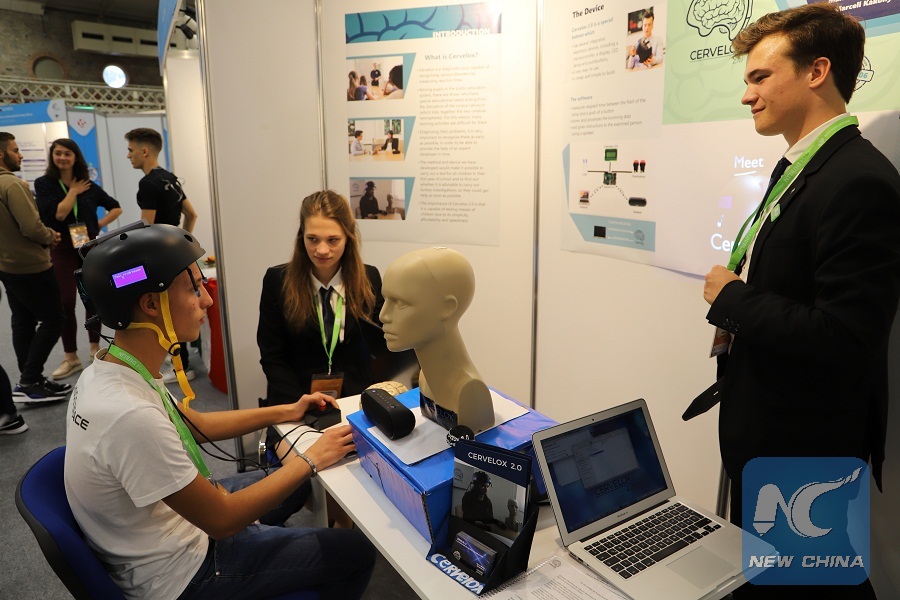 Contestants demonstrate their research projects on the opening day of the 30th European Union Contest for Young Scientists in Dublin, Ireland, Sept. 15, 2018. (Xinhua)