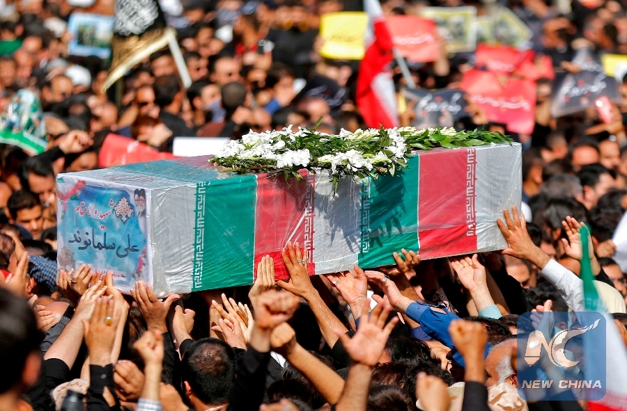 TEHRAN, Sept. 24 (Xinhua) -- Thousands of Iranians took part in the funeral ceremonies on Monday for the victims of recent terrorist attack in Iran's southwestern city of Ahvaz.