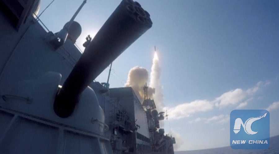 A still image taken from a video footage and released by Russia's Defence Ministry on June 23, 2017, shows a missile being fired from a Russian warship to hit, according to the Russian Defence Ministry, Islamic State targets in Syria's Hama province, from the Mediterranean sea. (Ministry of Defence of the Russian Federation/Handout via REUTERS )
