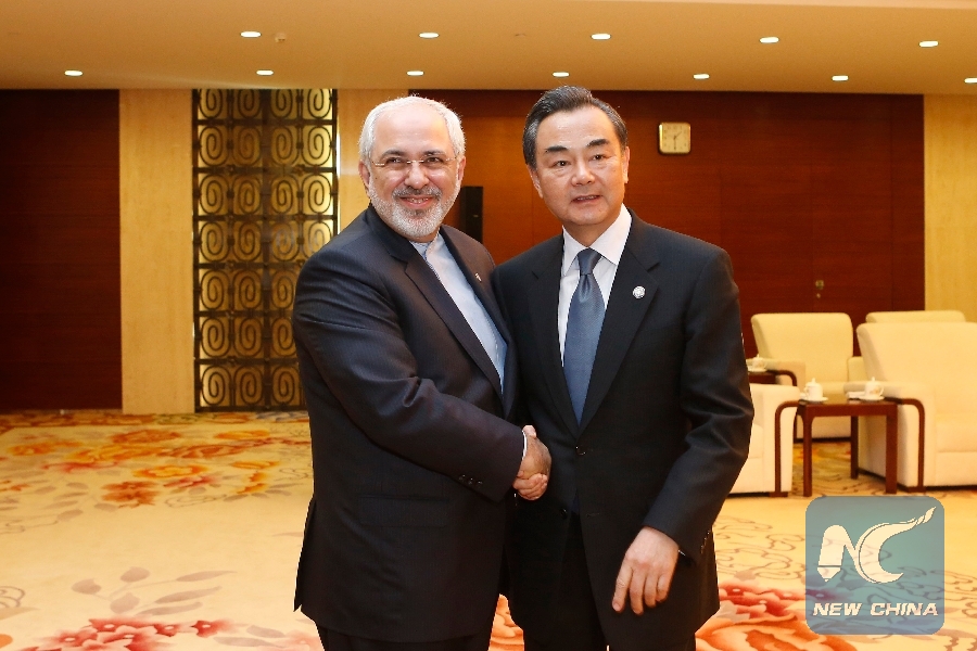 File Photo: Chinese Foreign Minister Wang Yi (R) meets with his Iranian counterpart Mohammad Javad Zarif in Shanghai, east China, May 21, 2014. (Xinhua/Zhang Yuwei)