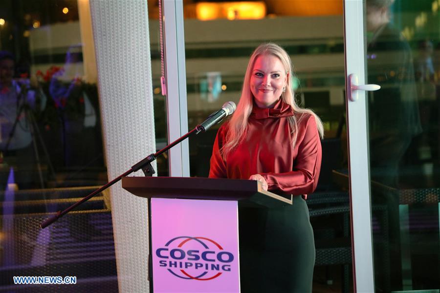 Meliha Mujezinovic, head of COSCO Shipping Dragon Maritime Company for BiH, speaks during an inauguration of China's COSCO Shipping Dragon Maritime Company's branch office in Sarajevo, Bosnia and Herzegovina, on Sept. 25, 2018. COSCO Shipping Dragon Maritime Company officially inaugurated its branch office in Sarajevo on Tuesday, promising economic progress. (Xinhua/Haris Memija)