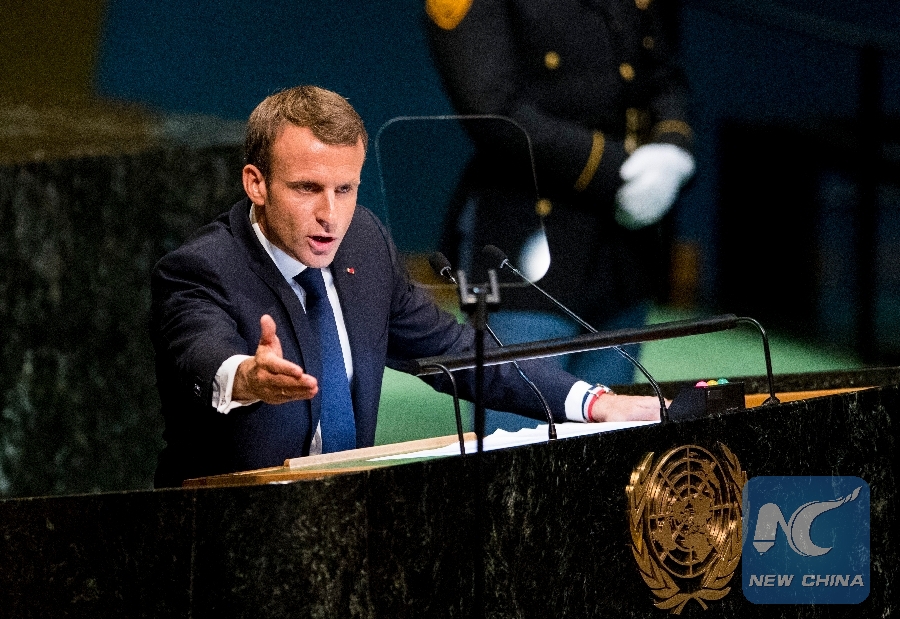 UNITED NATIONS, Sept. 25 (Xinhua) -- French President Emmanuel Macron on Tuesday, as much anticipated, strongly defended multilateralism and the Paris Agreement on climate change at the ongoing General Debate of the 73rd UN General Assembly (UNGA 73).