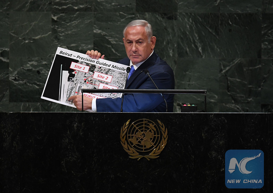 JERUSALEM, Sept. 28 (Xinhua) -- In his 10th address to the United Nations General Assembly on Thursday, Israeli Prime Minister Benjamin Netanyahu sounded as determined as ever to expose what he believes is the largest threat to his country's security: the Iranian nuclear program.