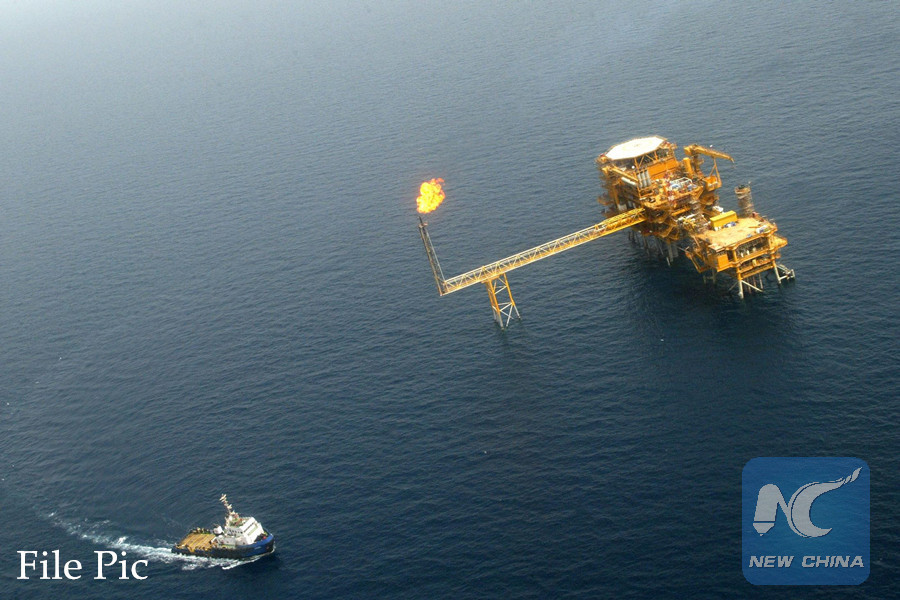 This photo taken on May 16, 2004 shows an arial view of Iran's Balal offshore oil platform in the Gulf waters. (AFP File photo)