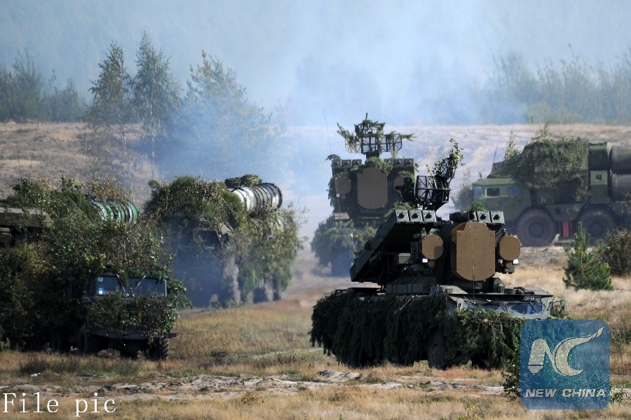 In this file photo taken on September 19, 2017 Belarus' OSA-AKM surface-to-air missile launchers and S-300 antiaircraft systems move to firing positions during the joint Russian-Belarusian military exercises Zapad-2017 (West-2017) at a training ground near the village of Volka, some 200 km southwest of Minsk. (AFP photo)