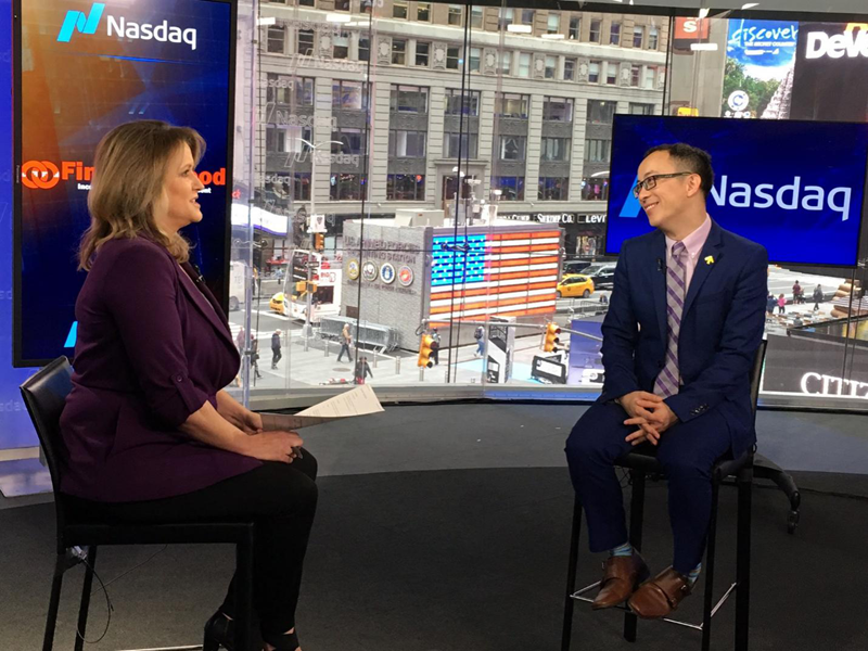 Xiaochen Zhang (R), president of FinTech4Good. (Xinhua photo)