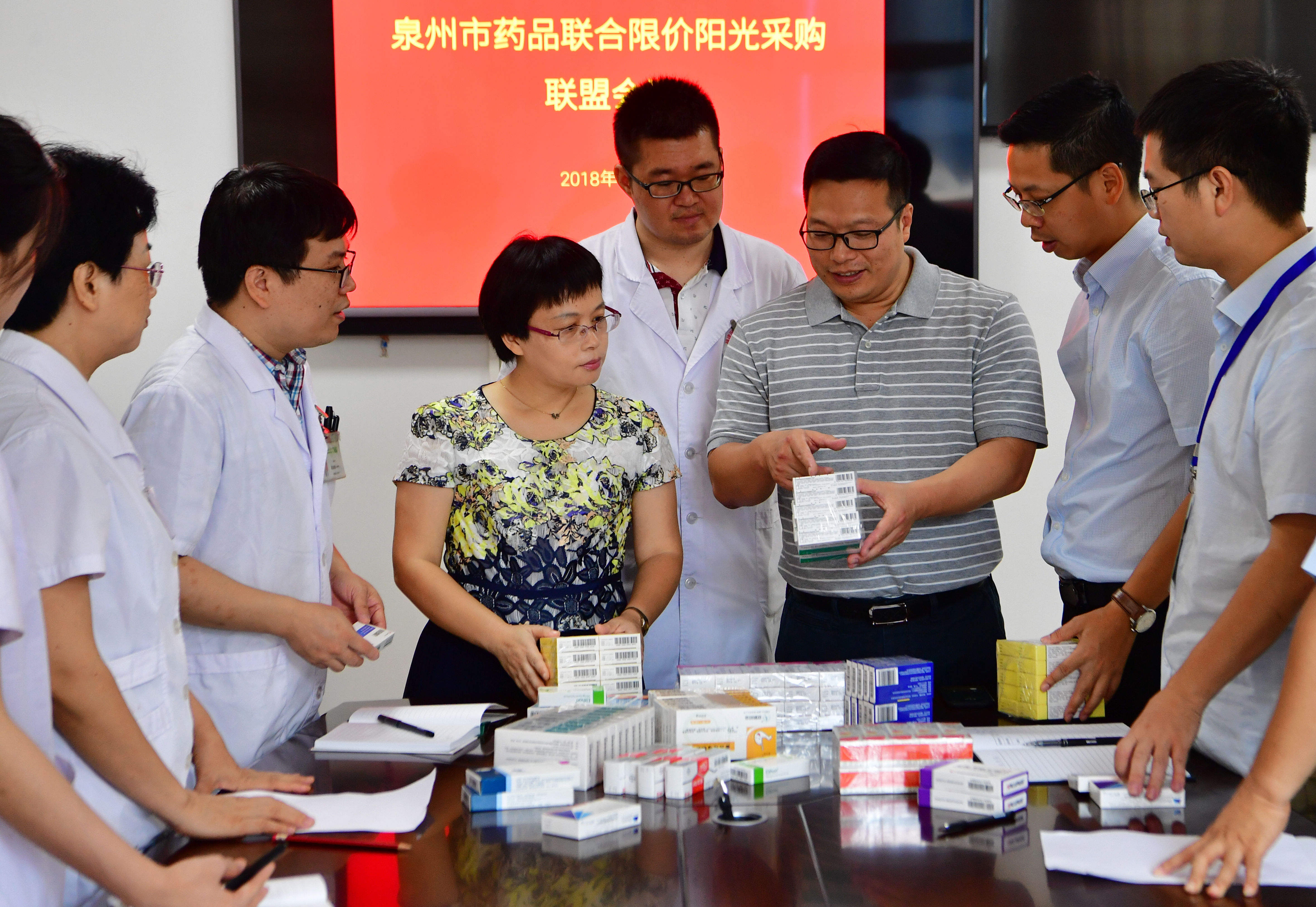 Experts select medicines for a price cap program in Quanzhou, southeast China's Fujian Province, Aug. 2, 2018. (Xinhua/Wei Peiquan)