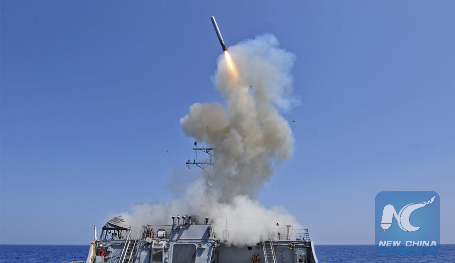 The guided-missile destroyer USS Barry launches a Tomahawk cruise missile from the ship's bow in the Mediterranean Sea in this U.S. Navy handout photo taken March 29, 2011. (Reuters Photo)