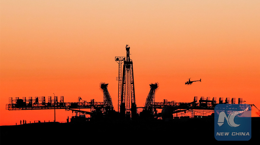 A police helicopter flies above a launchpad at the Baikonur Cosmodrome in Kazakhstan October 9, 2018. (REUTERS PHOTO)