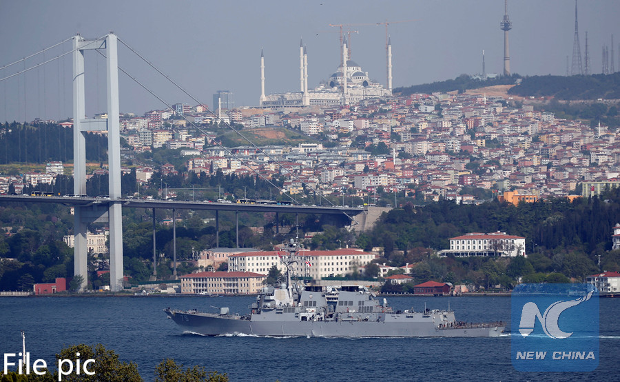 The U.S. Navy's guided-missile destroyer USS Oscar Austin (DDG 79) sets sail in the Bosphorus, on its way to the Black Sea, in Istanbul, Turkey, May 5, 2017. (Reuters photo)