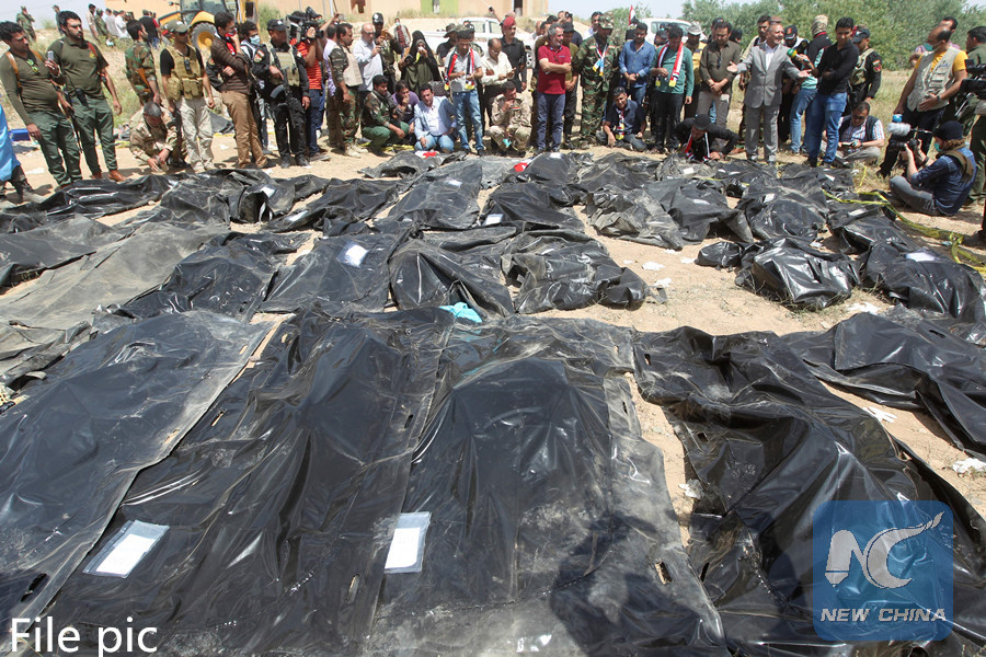 In this file photo taken on April 12, 2015 Iraqis mourn near body-bags containing the remains of people believed to have been slain by jihadists of the Islamic State (IS) group lying on the ground at the Speicher camp in the Iraqi city of Tikrit. (AFP photo)