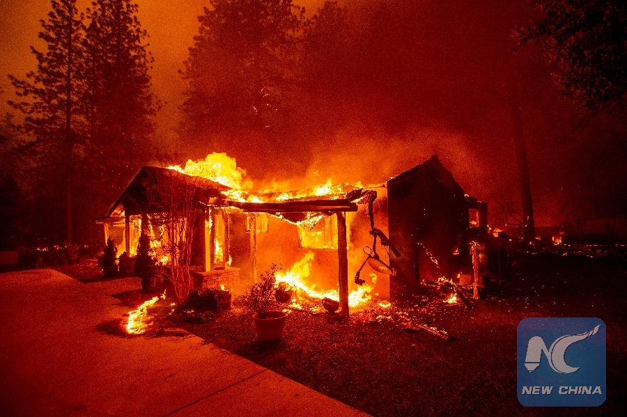 A home burns during the Camp fire in Paradise, California on Nov. 08, 2018. (Xinhua/AFP)