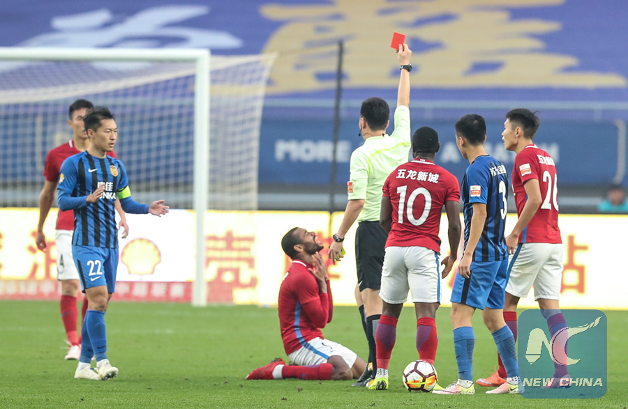 Henan Jianye's forward Ricardo Vaz Te from Portugal has received a red card in Chinese Super League in a match with Jiangsu Suning.