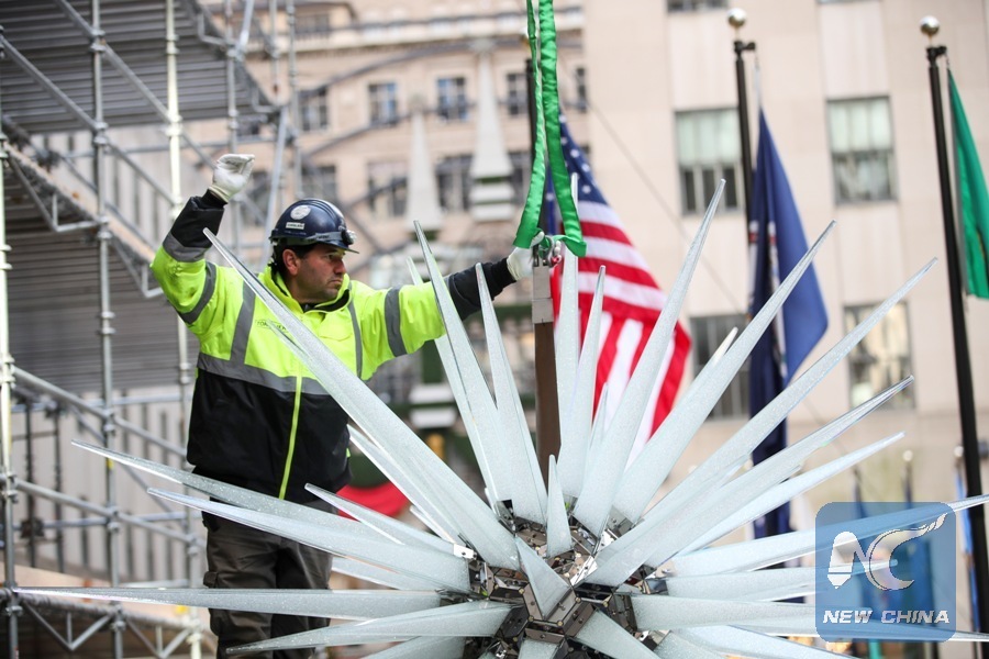 NEW YORK, Nov. 14 (Xinhua) -- A new Swarovski Star for Rockefeller Center Christmas tree was unveiled and raised to the top of the tree on Wednesday, marking the start of the holiday season.