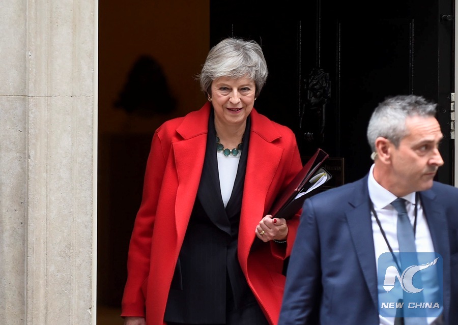 LONDON, Nov. 17 (Xinhua) -- As British Prime Minister Theresa May appointed replacements Friday for the two front-bench ministers who quit this week, a leading expert in politics predicted she only stood a 50-50 chance of winning a challenge to her leadership.