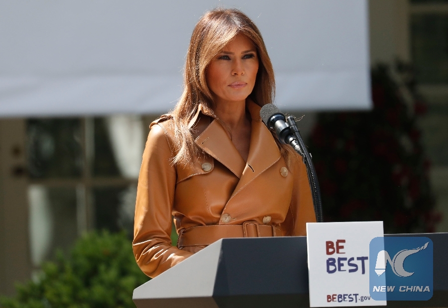 File Photo: U.S. first lady Melania Trump announces the launch of her "Be Best" initiative in the Rose Garden at the White House in Washington, U.S., May 7, 2018. (Xinhua/REUTERS)