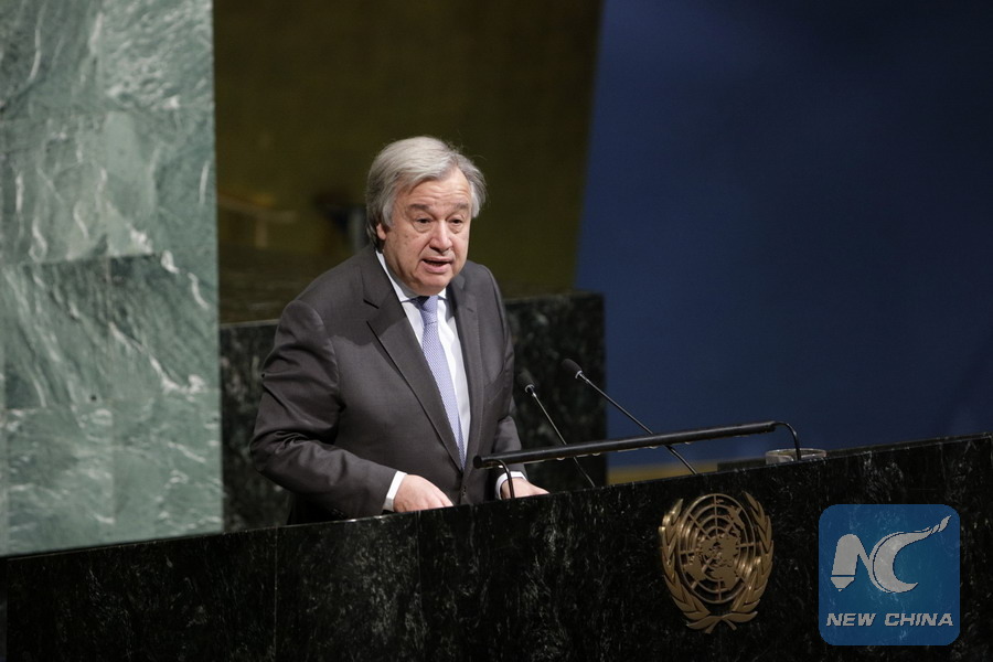 United Nations Secretary-General Antonio Guterres addresses the opening meeting of the 62nd session of the Commission on the Status of Women at the UN headquarters in New York, March 12, 2018.(Xinhua/Li Muzi)
